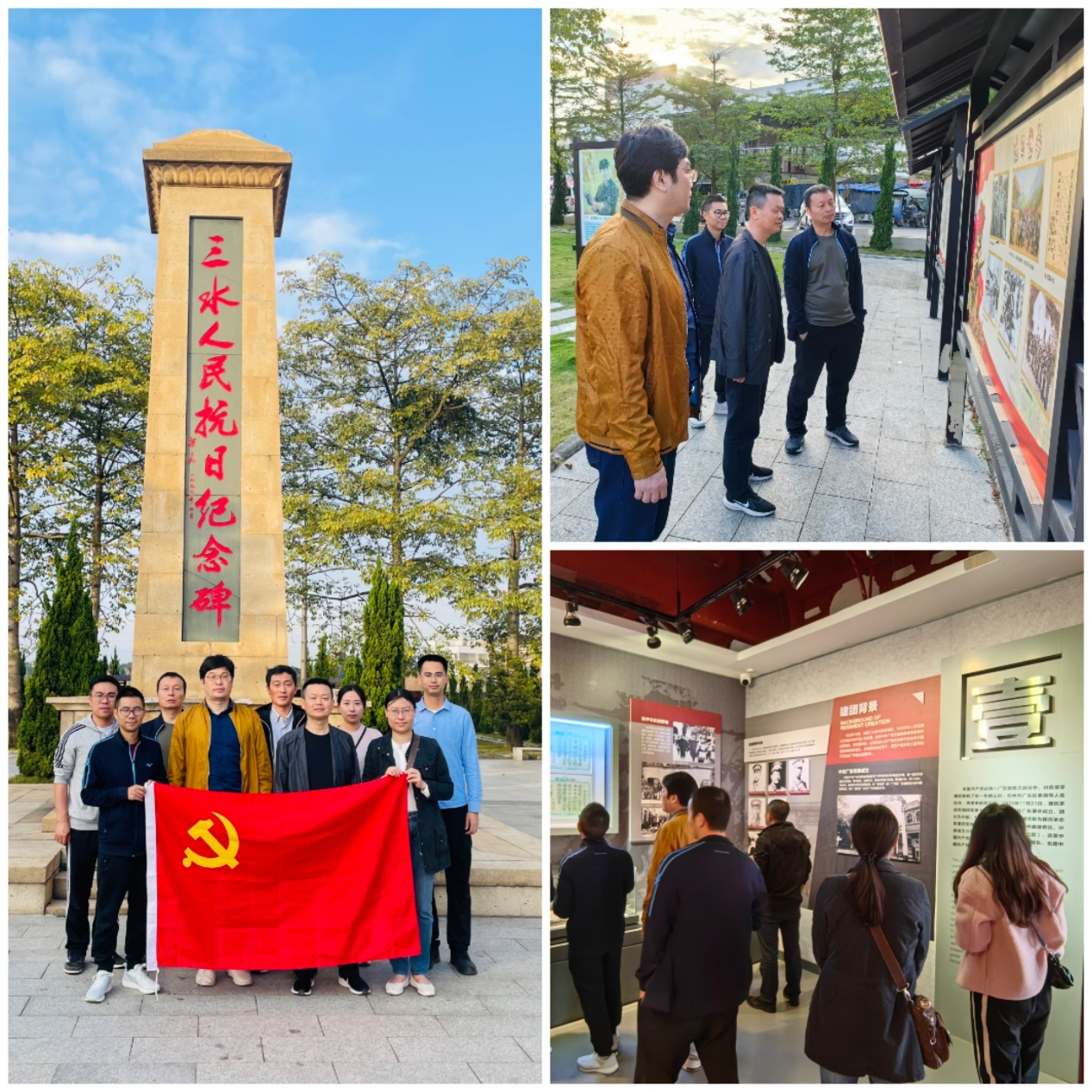 回望历史用心感悟,和平思源永记党恩。支部党员随后前往三水抗日革命教育基地参观学习。1938年,日军入侵三水县,所到之处极尽烧杀抢掠之恶行,人民群众处于水深火热之中。馆内泛黄的老照片、缴获的武器装备、珍贵的烈士遗物见证了革命先辈的坚定信念、不畏艰难、不怕牺牲的奋斗历程,使大家深刻体会到,在国家生死存亡之际,是中国共产党挺身而出,带领三水人民开展抗日救亡运动,用生命和鲜血守护家园,并最终取得抗战胜利。在基地的抗日剪影展板前,支部党员围绕“个人对抗日精神的理解”“如何发扬抗日精神”“加强党支部政治建设”等进行了交流探讨。