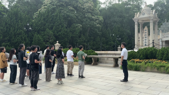 研究生第一党支部和第二党支部则前往黄花岗七十二烈士墓园参观学习。黄花岗七十二烈士墓园,是为纪念在1911年4月27日(农历三月二十九日)的“三二九起义”中牺牲的烈士们而建造的,是广州作为近代革命策源地的一处重要红色地标。党员们在庄严肃穆的氛围中参观了陵园,并在烈士纪念碑前敬献鲜花和鞠躬,以此表达对烈士们的缅怀和崇高敬意。身处先烈们曾经战斗过的地方,党员们积极交流研学感想,深刻感受到革命战争年代虽已远去,但革命精神浩气长存,纷纷表示吾辈更应奋发图强,传承红色薪火,争做时代先锋。