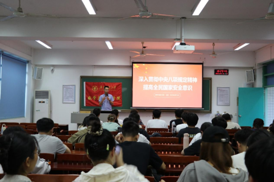 活动伊始,学院党建办指导老师李鑫向大家开展国家安全专题宣讲,学习习近平总书记关于总体国家安全观的重要论述,并观看《2025全民国家安全教育公开课》和相关违纪违法典型案例视频,使师生们深刻地感受到国家安全与我们每个人息息相关,要时刻警惕、抵制各种陷阱和诱惑,堵住不良作风的漏洞,自觉扛起守护国家安全的重大责任。
