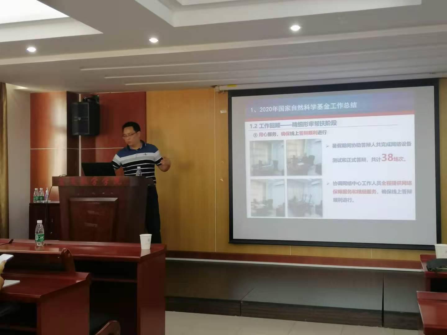 陈辉副院长对我院2020年国家自然科学基金的申报工作和立项情况给予了肯定,对已取得的成绩表示祝贺。他解读了新形势下国家自然科学基金的困难与挑战,对我院2021年基金申报工作提出了新的要求。