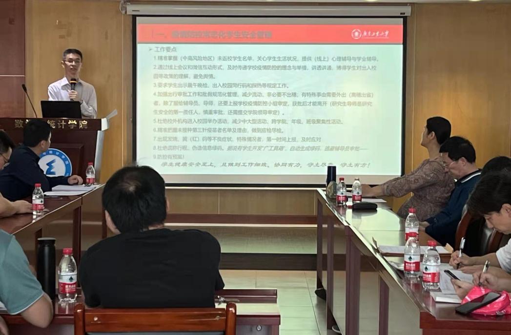 林逢春副书记传达全省2022年春季学期校园疫情防控工作最新部署的会议精神,并立足学院学生动态,重点阐述了近阶段学院疫情防控的方案,他要求班主任与辅导员协同一致,精细扎实地推动学生落实好“安康打卡”“晨午晚检”“学生外出报备”等工作,全力以赴做好疫情防控工作。同时,他也通过解读《广东工业大学心理健康行动方案》的内容,结合学院“八大库”的分布及相关实例,强调了班主任老师平时深入宿舍、深入课堂,关心学生心理动态与实际需求,并协同辅导员、班团干部、心理委员及舍长共同织密织牢学生心理“防护网”及防治网络诈骗的重要意义与着力点。此外,他也分析了本科生班风学风建设中现状与现存问题,并结合学校有关班风学风在“1+2+3”攀撑计划中的功能位阶,探讨了构建学风建设长效机制及推进计划的具体设想与保障措施。