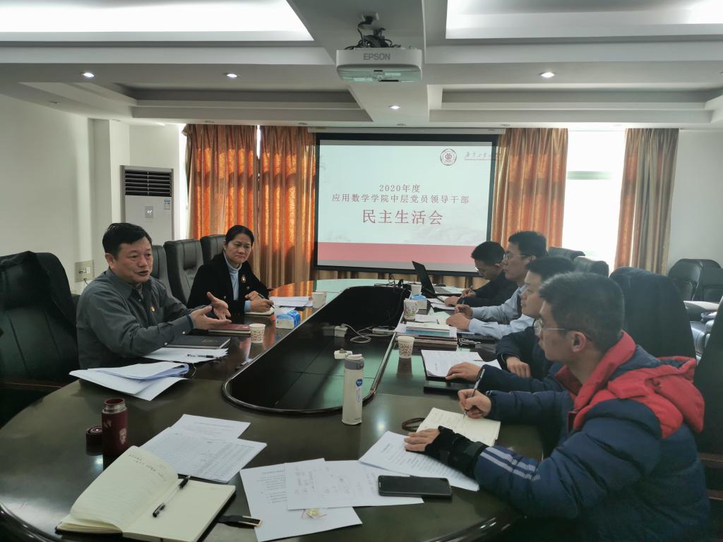 按照学校党委《关于认真开好2020年度中层党员领导干部民主生活会的通知》要求2021年1月19日上午,我院在龙洞校区行政楼511会议室召开了应用数学学院中层党员领导干部民主生活会。学校党委常委、副校级干部张学理出席会议并作指导讲话。会议由学院党委书记林伟英主持。