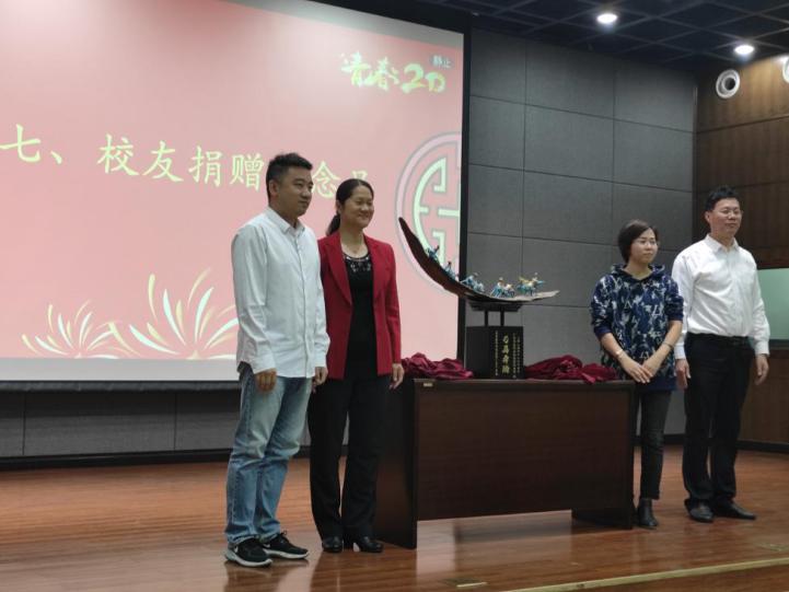 应用数学学院校友理事会会长、广东优友网络科技有限公司李桂董事长和刘少梅副董事代表广大校友向学院捐赠了寓意深远的的纪念品《万马奔腾》,表达了对母院“勇于追梦·奋进圆梦”的殷殷祝福。