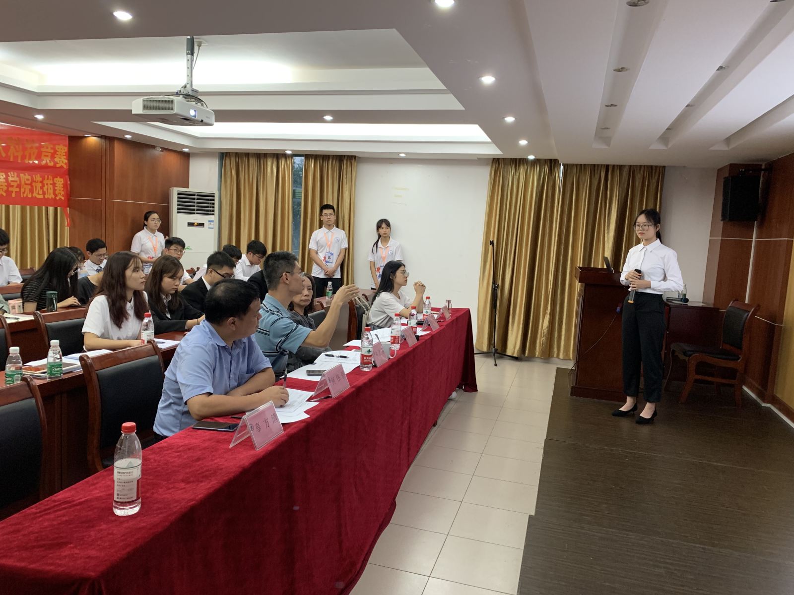 本次选拔赛共有9支队伍参赛,分为自然科学类和哲学社会科学类两个大组,由内容展示和问辩两个环节组成。参赛选手先用ppt展示的方式向各评委介绍所带来的项目作品,介绍完毕后,台下的评委老师针对项目进行了质询提问,再由选手逐一回答老师的问题。