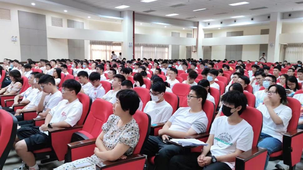 作为学生代表,研究生代表黄俊淋、本科生代表郑伴韵先后分享他们的学习和从事科技创新活动的经历及心路历程,借以勉励同学们怀着一颗感恩的心,牢记“厚德明理 博学创新”的院训,珍惜时光、努力学习专业知识,练就过硬本领,在成长的路上扬帆奋进。最后,全体新生合唱校歌《逐梦》,表达自身不负韶华,奋勇向前,逐梦向未来的愿景。
