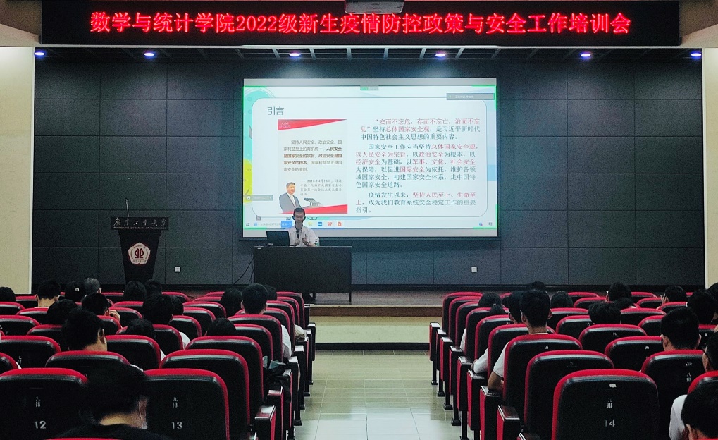 会上,林逢春副书记以近些年热播的电影《中国医生》作为切入点,阐述电影剧本的原型、主线及所彰显党和政府在抗击疫情中所秉持的“人民至上、生命至上”的理念。他结合钟南山、李兰娟、张定宇等共产党员在抗击疫情中的卓越表现,阐释了中国抗击疫情中所彰显和传承的伟大建党精神;同时,他也结合近年来广州医护工作者、我校志愿者参与抗疫的图片及生动案例,让同学们深度感受抗疫中的中国力量。据此,他还详尽介绍了新生在疫情防控常态化管理下学生管理工作,要求广大新生同学积极配合学校的防控工作,围绕安康打卡、佩戴口罩、核酸检测和做好防护物资准备等方面提出具体要求;同时,他还教育同学们要养成良好的卫生习惯并坚持体育锻炼,听从指挥,齐心协力打赢疫情阻击战。最后,他还从财产安全、用电安全、心理健康等方面引导同学们要谨防电信诈骗、强化用电安全意识、保持积极健康的心理状态,勉励新生们在践行“健康无价”理念的同时,“感恩前行、奋发图强、共谋学业”。