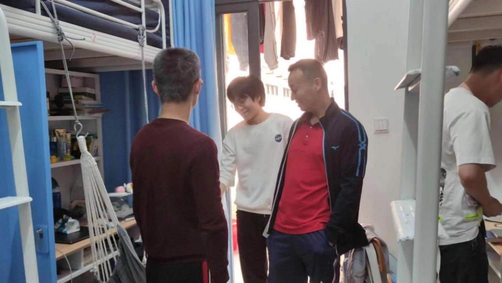 走访过程中,林逢春副书记和几位老师亲切地与同学们进行交谈,了解同学们假期健康状况、返校行程、新学期规划安排及生活需求,同时提醒同学们注意用电安全问题,防止网络诈骗,加强体育锻炼,加强体质,并鼓励同学们提早调整状态迎接新学期的学习生活,增进同学间的交流。