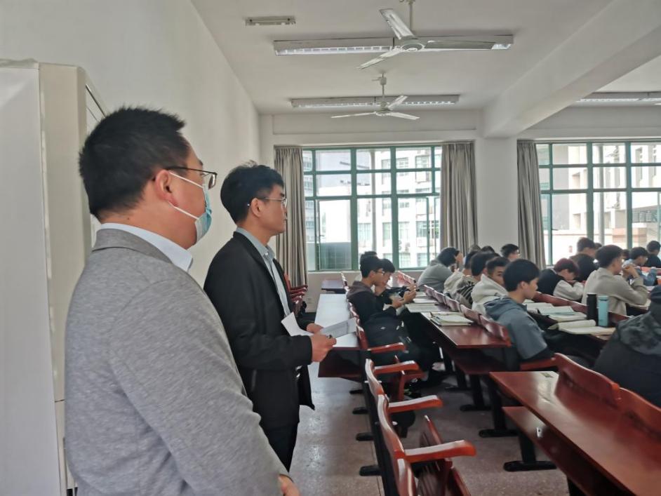 为贯彻落实春季开学工作动员会议精神,新学期开第一天,学院党委书记林良盛副书记林逢春、副院长何伟骅和辅导员一同到教学楼、实验楼巡查学生课堂情况,实地了解教师任课情况及学生上课状态,抓好“开学第一课”。