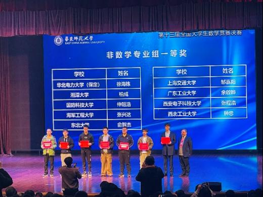 第十三届全国大学生数学竞赛决赛于2023年3月25日在华东师范大学举行,我校在本次比赛取得历史性突破,斩获全国一等奖1项、全国三等奖1项。我校余啟晔同学(20级机电工程学院机械设计制造及其自动化专业)荣获非数学类全国一等奖,吴英俊同学(18级自动化学院自动化专业)荣获非数学类全国三等奖,这是我校首次获得该项竞赛的全国一等奖该项竞赛竞争激烈,非数学类初赛共有全国的181654人报名参赛(全国一等奖仅69个)余啟晔同学和吴英俊同学在2021年的初赛中表现优异,获得了此次代表广东省参加全国大学生数学竞赛非数学类决赛的资格(全省仅11人)。
