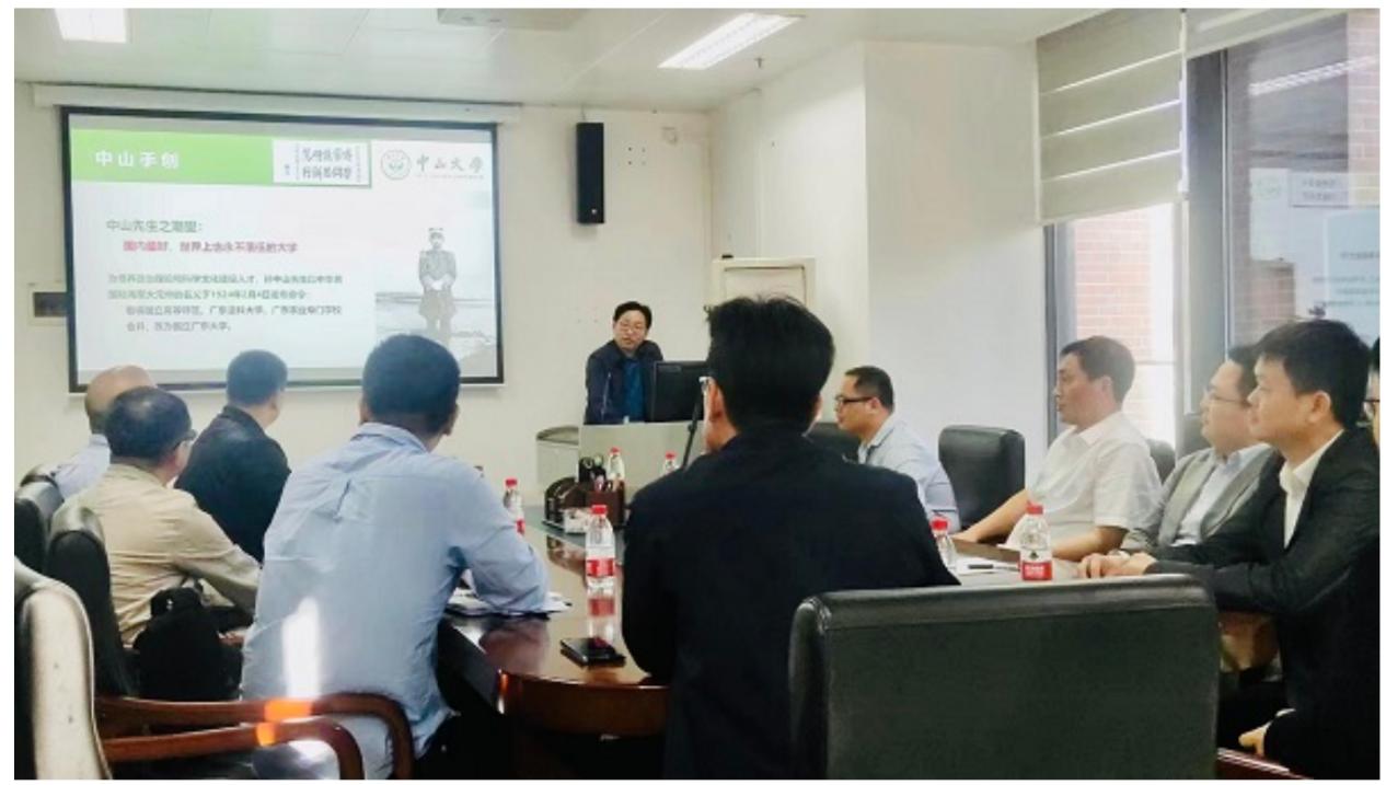为了加强与兄弟院校的交流,促进学院进一步科学发展,4月26日,学院林良盛书记、陈智奇院长率领院领导班子一行到中山大学数学学院交流调研。在中山大学新数学楼五楼会议室召开了座谈会,中山大学数学学院党政班子成员参加,双方进行了深入的交流和相关方面的探讨。