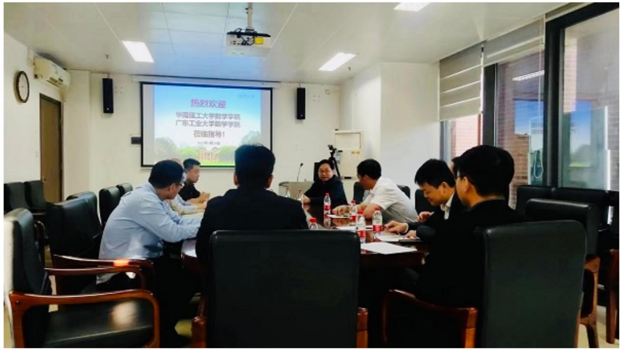 陈兵龙院长代表中山大学数学学院对我院领导班子一行的到来表示热烈欢迎。他介绍了中山大学数学学院近年来学科建设、师资队伍、人才培养、科学研究等方面的做法和取得的成绩,分析了发展中存在的问题与不足。我院领导也就本单位的党建工作、学科建设、人才培养,尤其是研究生培养和科研工作方面的情况进行了交流探讨。