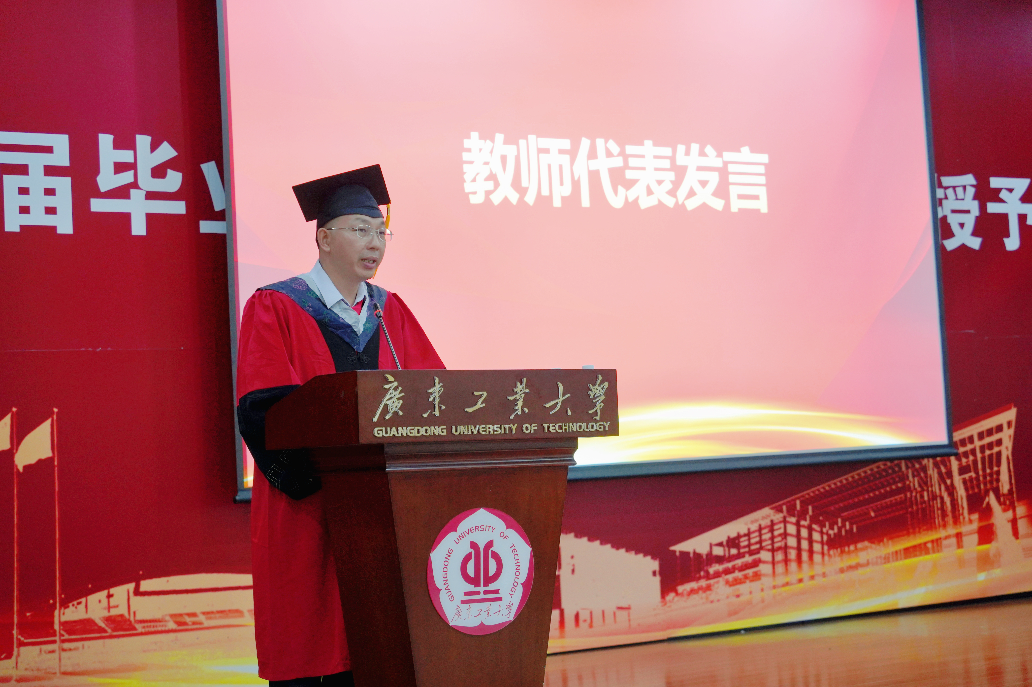 作为教师代表,乔守红教授回顾了2023届同学们大学四年期间在校园里度过的美好时光,充分肯定了同学们所付出的辛勤努力,由衷赞美毕业典礼这个幸福时刻。他还强调了大学学习的价值与挑战,并用生动的数学语言形象描述了专业学习上的收获及现实挑战;同时他也鼓励同学们要坚持锻炼身体、坚持努力向上、保持良好的心态,让自己成为一个“积极乐观、情怀高尚,本领过硬、趣味担当”的“989大学”的数学人。