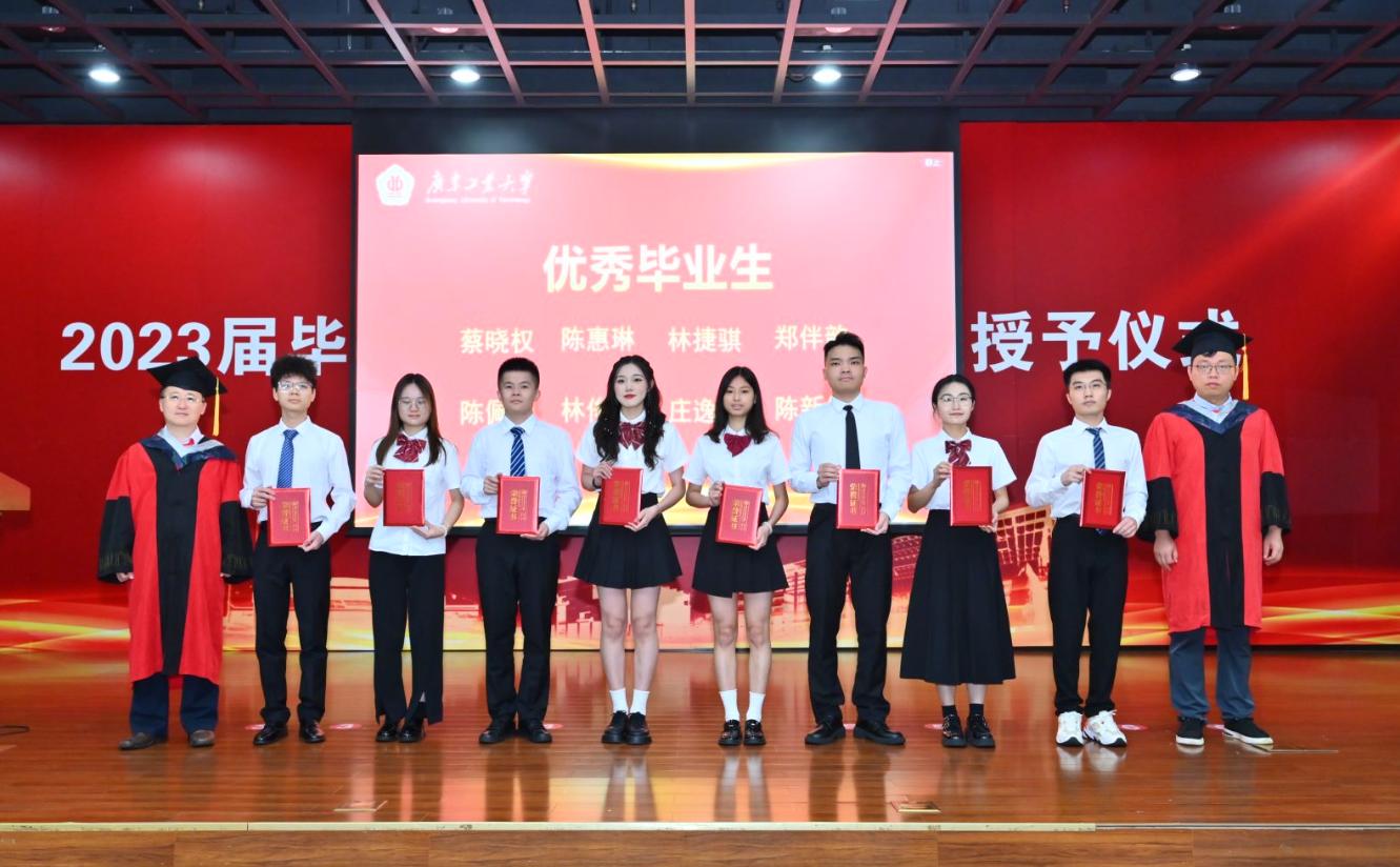 陈智奇院长、彭红云副院长及刘海林教授为欧彩霞、陈泽彬、肖茂、孙剑峰等4名优秀毕业研究生和蔡晓权、陈惠琳、林捷骐、郑伴韵、陈佩璇、林俊泰、庄逸琦、陈新纪等8名优秀本科毕业生颁发优秀毕业生证书。