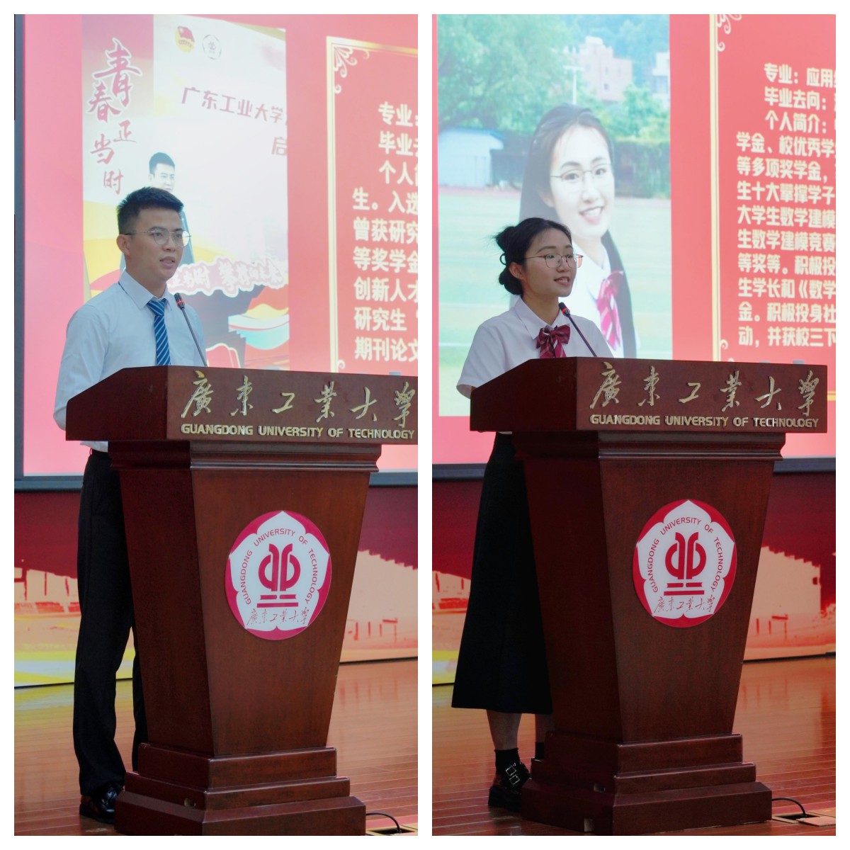 作为优秀毕业生代表陈泽彬、庄逸琦相继发表感言,深切怀念在我校的求学经历,感谢母校和学院的悉心栽培,感恩老师们的谆谆教诲,感激同学们的包容互助。他们也表示将带着从母校习得的宝贵知识、优良品格和过硬的技能本领踏上新的人生征程,时刻牢记“厚德明理 博学创新”的院训,用行动和奋斗书写属于数学人的华彩篇章。