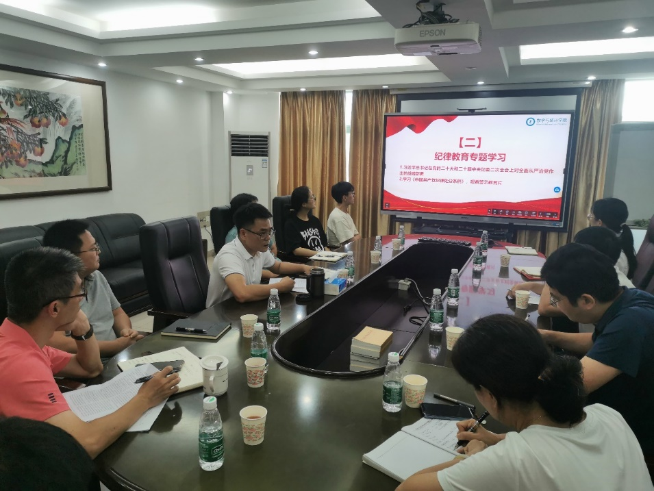会议传达了学校纪律教育学习月活动动员会的精神和要求,组织党员学习习近平总书记对全面从严治党作出的战略部署和《中国共产党纪律处分条例》的重点内容,并共同观看了《反腐败斗争必须永远吹冲锋号》《勇敢说不》等廉政视频资料。林良盛强调,学院各党支部要按照学校的统一部署,把主题教育和纪律建设结合起来,要始终把政治纪律和政治规矩挺在前面,真正落实到具体工作中,体现在日常行为上,为学院建设和学校发展提供坚强组织保证,要严格贯彻落实中央八项规定精神,持续做好中秋国庆期间的正风肃纪工作。