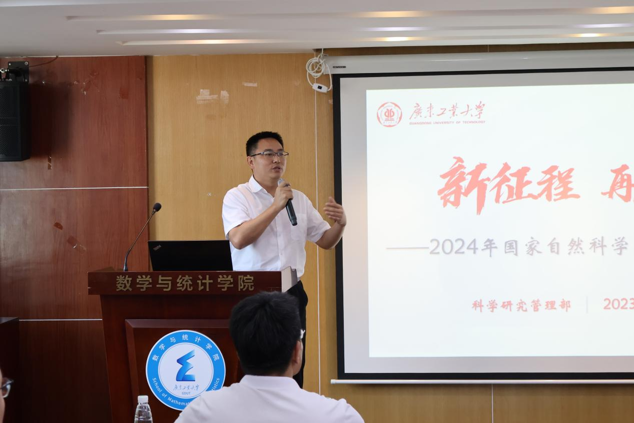 随后,陈辉副处长总结了学校2023年度国家基金申报、立项情况,分析了面临的形势和问题,并对2024年度基金申报工作做了全面介绍,动员符合条件申报的教师扎扎实实做好日常研究,夯实研究基础,增强与同行学者的交流与合作,多参会、多办会,多请教、多思考,筑牢科研诚信的底线。