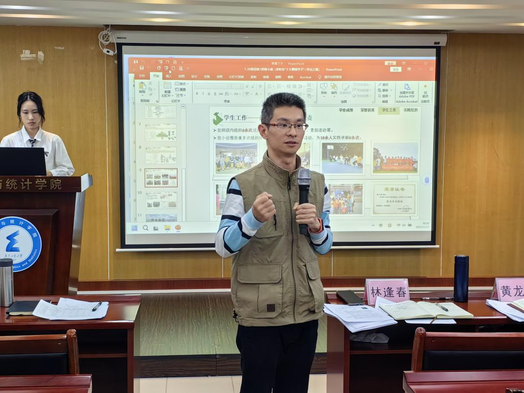 活动分为候选人展示、评委提问和点评环节。其中,参与本次评选活动的十二位候选人依次上台进行展示,各位候选人向评委们展示了自己的个人履历和参评优势,分别展现了自身在专业学习、社会实践、学术科技等方面的优秀表现与良好的精神面貌。在评委提问环节中,评委老师们对各位候选人的展示作了针对性提问和细致点评。各位候选人的精彩表现也得到了评委老师们和现场观众们的高度认可。最终,肖云浩、邱志林、邱树鹏、钟俊彬、丁蕾婷、马文茵、何佳蕾、冯诗尧等八位同学脱颖而出,将代表学院参与下一阶段学校范围的评选,学院老师接下来也会对他们下一轮学校答辩做相关指导,期待他们能为学院争光!