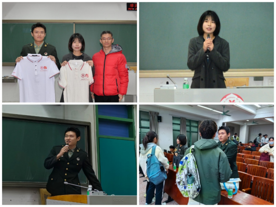 随后,退役大学生代表倪卓妍(2017级数学与应用数学专业)、王泓尊(2020级数学类)向到场的同学们分享了自己的军旅生涯。倪卓妍讲述了自己的入伍初心和在军营里得到的成长与历练,并通过生动的短视频和精彩的活动照片,全方位展现了多姿多彩的部队生活。王泓尊以一名普通士兵的角度,帮助同学们认识部队里艰险的执勤环境、体会军人的神圣使命以及了解有趣的吉祥物故事。两位代表的精彩讲述感染了现场的每位同学,赢得了阵阵掌声。