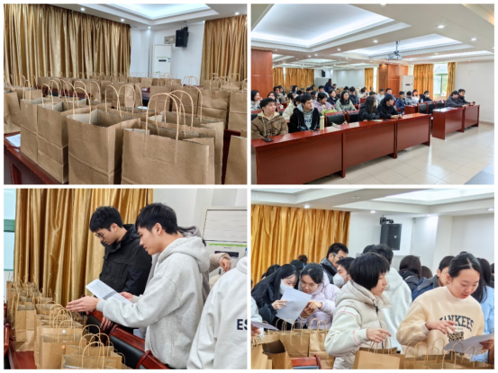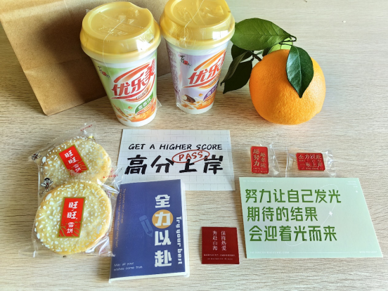 学院为每位考研学子精心准备了“暖心加油包”,包内装有实用的笔记本和文件袋、印有院徽的明信片、寓意“一战成硕”的橙子、“考研上岸”的徽章、“好运相伴”的饼干及奶茶等,以此传递学院对考研学子的真挚祝福与美好祝愿。活动中,2020级辅导员李鑫老师鼓励同学们要保持良好的学习状态,合理安排复习时间,注意身体健康,诚信应考,全力以赴考出最佳成绩,一战上岸。