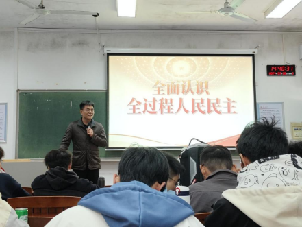 林良盛书记以《全面认识全过程人民民主》为主题,从越走越宽的民主之路、科学有效的制度安排、彰显优势的民主模式、可资借鉴的民主典范四个方面讲述新时代发展全过程人民民主在全面建设社会主义现代化国家的重大意义。他以生动形象的学习、生活实例讲解,引导同学们全面把握全过程人民民主的科学内涵,为同学们提供了全面而深刻的理解框架,与同学们共同探讨“何为民主”以及“民主何以落到实处”等若干问题。林良盛书记也勉励同学们要深刻领会和把握习近平新时代中国特色社会主义思想的世界观、方法论和贯穿其中的立场观,用理论武装头脑,以实际行动共同推进中国式现代化建设,实现中华民族的伟大复兴。