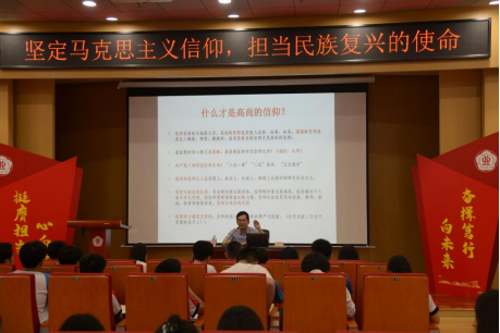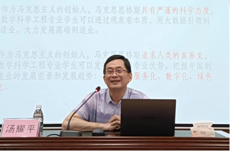 汤耀平教授“什么是信仰?”这一问题切入,引领在座师生走进了一场关于马克思主义信仰与中华民族复兴的深刻探讨。“人为什么要有信仰”以及“马克思主义信仰什么”两个维度展开论述,回应了“新时代我们应该信仰什么”新时代我们为何还要坚持和发展马克思主义”的问题汤教授勉励同学们,要坚定马克思主义信仰,将个人理想融入国家发展与民族复兴之中要秉持人文情怀,将学术研究与国家发展紧密结合,要发挥数学学科中的理性科学精神,利用扎实的专业知识与先进的科学技术推动社会的发展,用实际行动践行马克思主义,听党话、跟党走,努力成长为有理想、敢担当、能吃苦、肯奋斗的新时代青年。