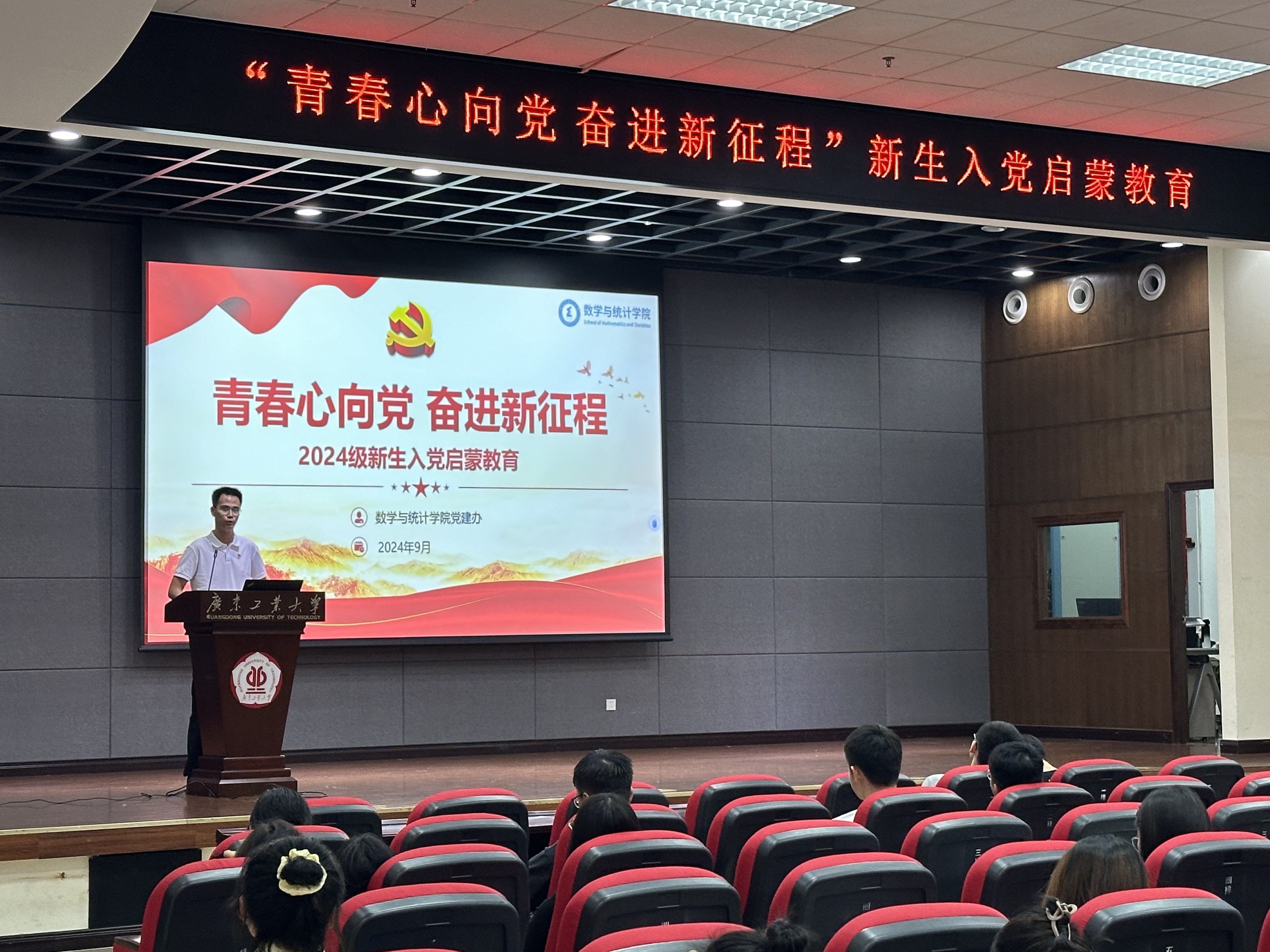 为深入学习贯彻党的二十届三中全会精神,加强新生理想信念教育,引导新生积极向党组织靠拢,我院于9月5日下午在学术报告厅组织开展2024级新生入党启蒙教育活动。本次活动由组织员李鑫老师主讲。