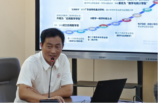院长陈智奇从学院历史沿革、专业学科、课程与团队、师资队伍、学科方向等方面对广东工业大学吃瓜网每日大赛今日榜单进行详尽介绍,强调学院积极承办全国及广东省大学生数学竞赛等学科竞赛,以此为抓手推进大学数学等公共数学课程教学改革,进一步推动学院教育教学改革和发展。