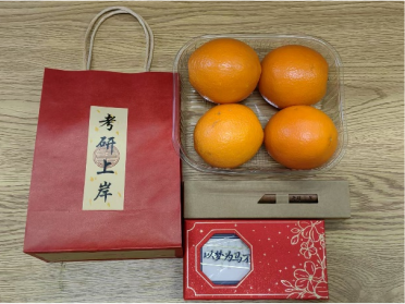 此外,学院也开展考研送温暖活动。学院党委林逢春副书记为考研学生赠送考研礼包,并鼓励他们保持昂扬向上的心态,努力备考,并祝他们成功上岸,一“研”为定!据统计,学院共为报考研究生考试的130余位学生精心准备了“考研加油包”:篆刻着“考研上岸”字样的签字笔套、“金榜题名得偿所愿”“以梦为马不负韶华”“风雨无阻笃行不怠”等字样书签,以及寓意“心想事成”的橙子,希望借此方式传递学院对考研学子的真挚关心与美好祝愿,增强考研学生的决心与信心。