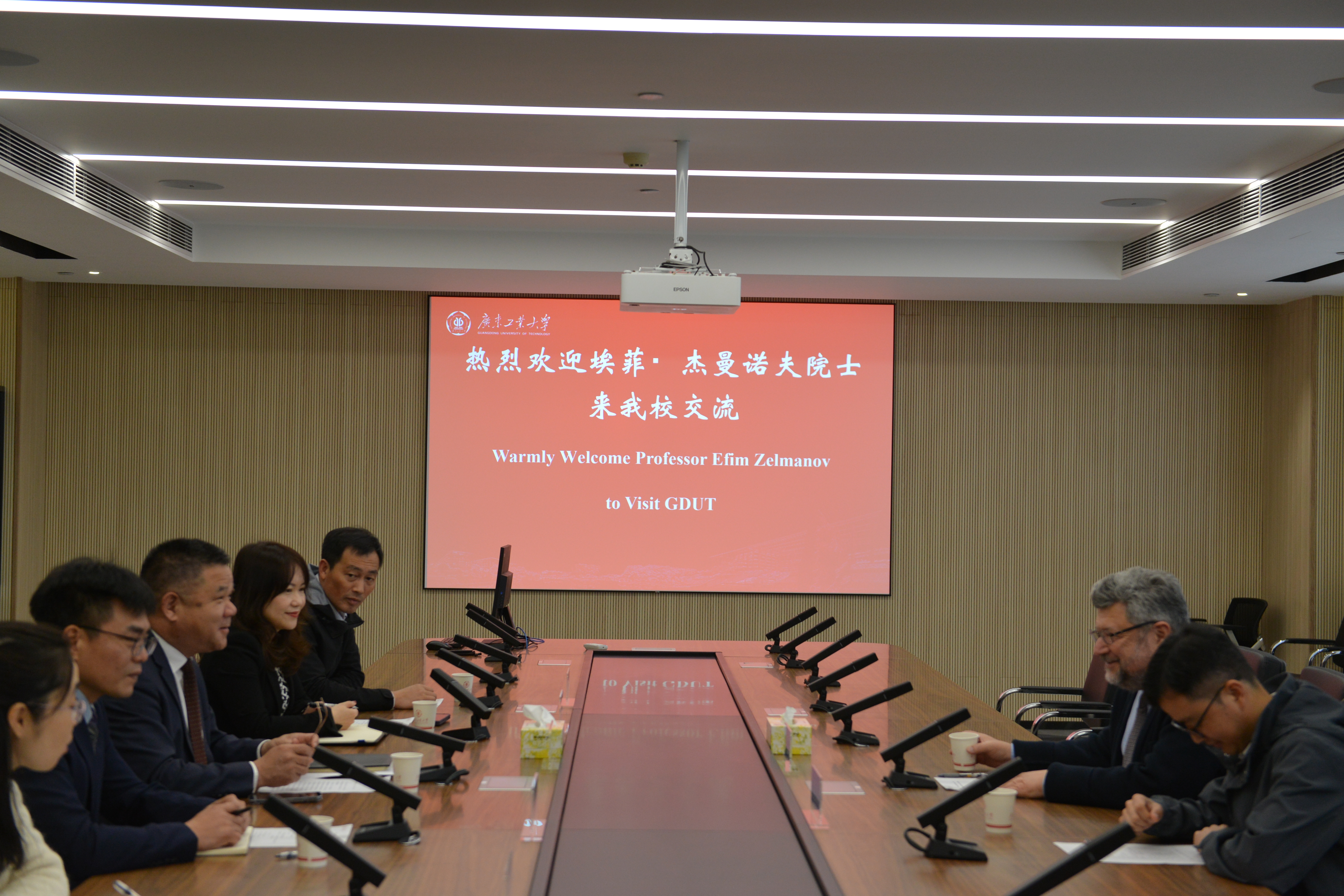 杜承铭副校长对杰曼诺夫院士的到访表示热烈欢迎,并介绍了广东工业大学的最新办学情况,期待杰曼诺夫院士以本次访问活动为契机,进一步加强双方科研合作以及师生交流。杰曼诺夫院士感谢学校的热情接待,非常期待以本次学术讲座为序幕,与广东工业大学在数学学科展开更深入的交流。
