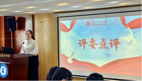 武赛赛老师对本次比赛作出点评。她首先高度赞赏参赛选手展现出的台风稳健特质,指出同学们在舞台呈现中仪态从容、表达流畅,充分彰显了新时代青年的自信风采。其次,她建议各班级重点强化数据可视化表达与重点信息分层呈现,通过精简文字、统一配色等策略提升PPT演示的专业度。同时,她勉励同学们保持创新锐气,各班级应以学风建设为核心动力,在互学互助中营造“求知若渴、知行合一”的成长氛围,将专业知识应用与团队协作能力锻造紧密结合,共同打造具有持续发展力的学习型班级共同体。
