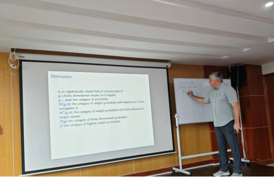 Gelfand-Tsetlin理论是20世纪中叶由苏联数学家Israel Gelfand与Mikhail Tsetlin提出的重要数学工具。Futorny教授重点阐释了Gelfand-Tsetlin公式的构造性证明方法,以及如何通过该理论刻画典型李代数(如一般线性李代数、正交李代数)的不可约表示。作为李代数与表示论领域的国际权威,Futorny教授以深入浅出的讲解风格和开放包容的学术态度赢得在场师生的赞誉。在提问环节,师生就理论推广、交叉学科应用等问题与Vyacheslav Futorny教授展开讨论。此次报告有助于提升研究生数学创新思维及能力,进一步加强了与国外优秀学者的交流合作。