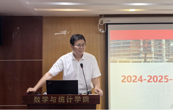 学校党委常委、副校长王振友认真听取学院工作汇报,并作指导讲话。他对学院本学期工作表示肯定,并代表学校对辛勤努力和付出的老师表示感谢!他分析了当前学校发展的现状与形势,并指出学校学院的发展离不开每一位教师的不懈努力,鼓励教师勇担育人使命,清醒正视并打破差距和不足,在教学科研工作中书写数学奋进篇章。他强调,学院领导班子要有“想干事、干成事”的能力,以清晰目标锚定方向,既要善谋全局,又要凝聚各方力量,带领全院师生在实干担当中交出学院发展答卷。