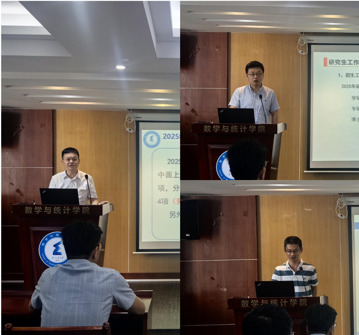 学院党委副书记林逢春,副院长陈学松、彭红云就新学期学院的学生工作、科研工作与实验室建设、研究生教育作了详细安排。