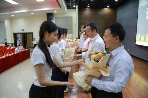 新生代表们手捧鲜花,走向辛勤耕耘的教师代表们,感恩他们为育人事业付出的心血,彰显学院尊师重教、薪火相传的良好氛围。