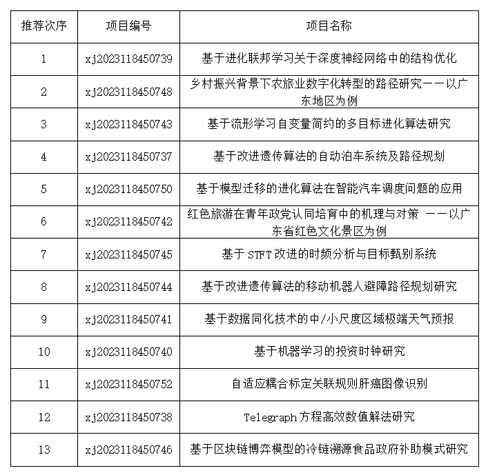 根据教务处《关于开展2023年校级大学生创新创业训练项目、2022年校级华为专项中期检查暨国家级、省级项目推荐工作的通知》的相关要求,现将学院审核通过中期检查的创新训练项目排序进行公示。