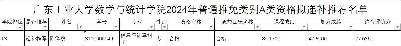 广东工业大学吃瓜网每日大赛今日榜单2024年普通推免类别A类资格拟递补推荐名单公示