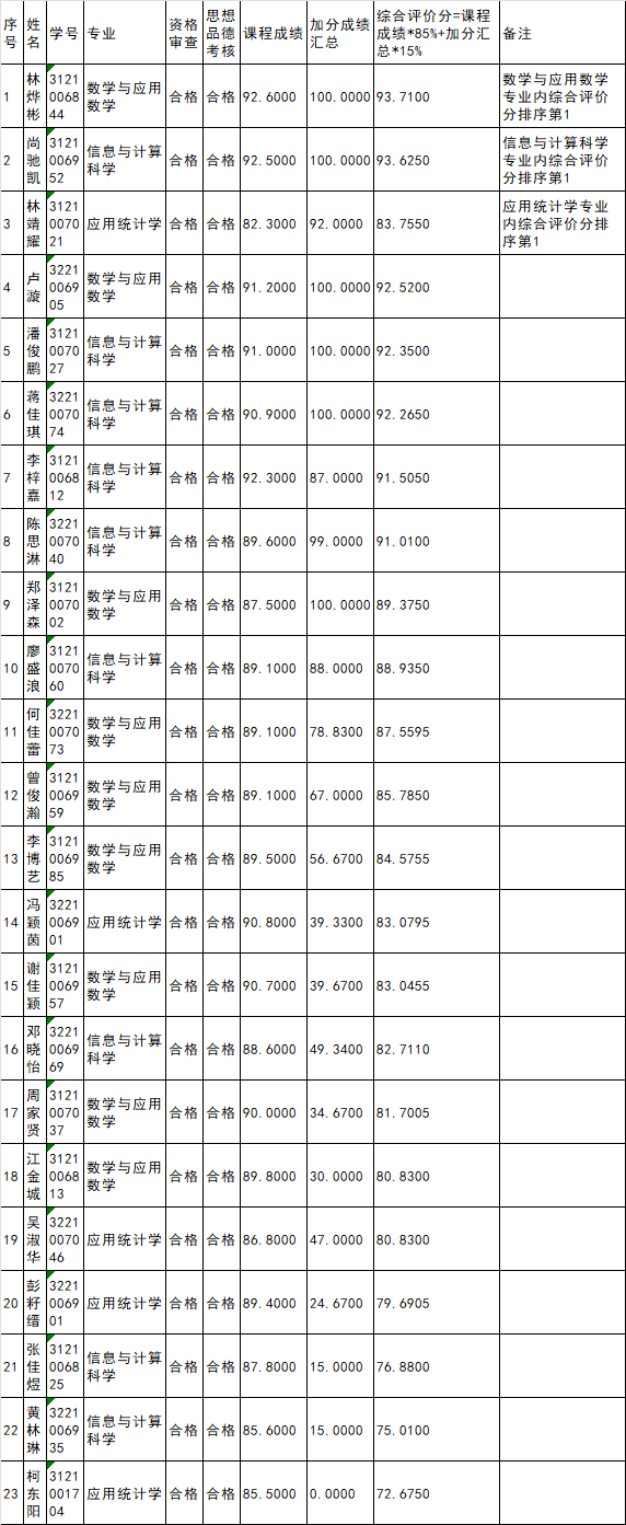 附广东工业大学吃瓜网每日大赛今日榜单2025年普通推免类别推免生遴选排位名单制定规则:优先遴选信息与计算科学、应用统计学、数学与应用数学三个专业各专业内部综合评价分排序第一人(共三位申请人),按照三人相互间综合评价分高低排列于前三位;此后自第四位起始,按综合评价分高低将剩余申请人予以排位。